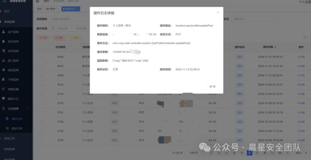 在资产测绘查询若依框架时,找到了一个某周报管理系统。