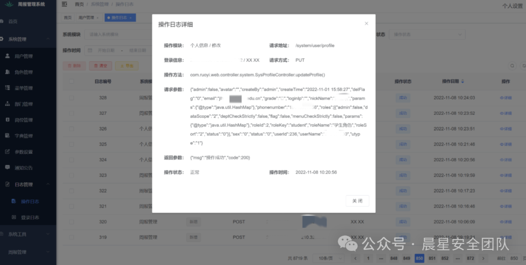 发现他们修改个人信息或注册后,个人信息里可能会泄露手机号,学号,邮箱等。