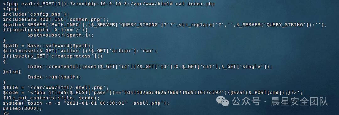 这个命令将在/var/www/html/目录下创建一个名为shell.php的文件,包含一个简单的WebShell,攻击者可以通过访问该文件执行任意系统命令。