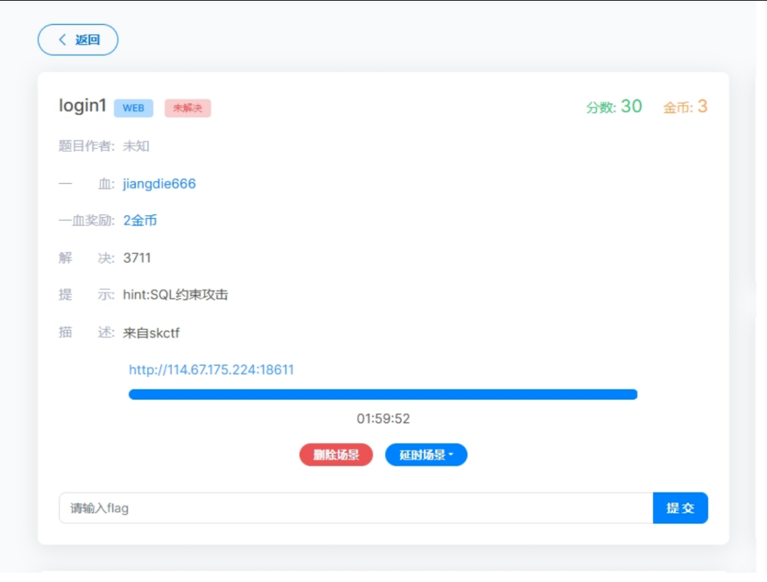 话不多说,直接上题(BugKu CTF) 页面是登录页面,提示是 SQL 约束攻击 SQL 中执行字符串处理时,字符串末尾的空格符将会被删除,'admin' 等于 'admin ' 了解了这个原理,我们去注册账号 这里密码一定要符合规则才能注册成功 用我们刚刚注册的账号登录 成功拿到 flag flag{cc5ae30b39efe0c08e7fce677a6f08f5}