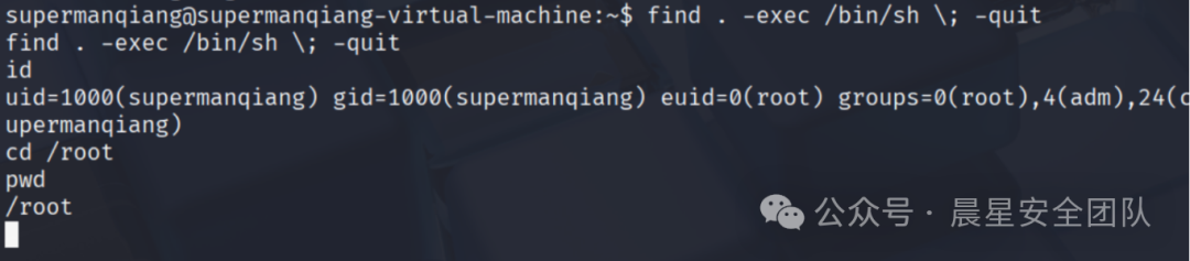 如果find在高权限上下文中运行(例如被root/管理员身份执行的脚本、cron job、或者某个有特权的进程间接调用find),那么-exec /bin/sh会在那个高权限上下文下启动shell,从而直接获得高权限交互式shell