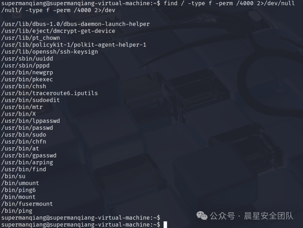 因此,这里会找到系统中所有设置了SUID的二进制文(如 /usr/bin/passwd)
