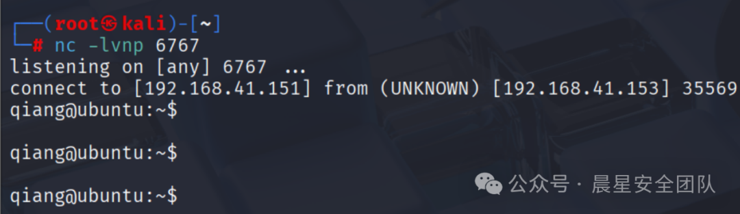 该shell的输入、输出、错误流都被重定向到远程TCP连接 (192.168.41.151:6767)