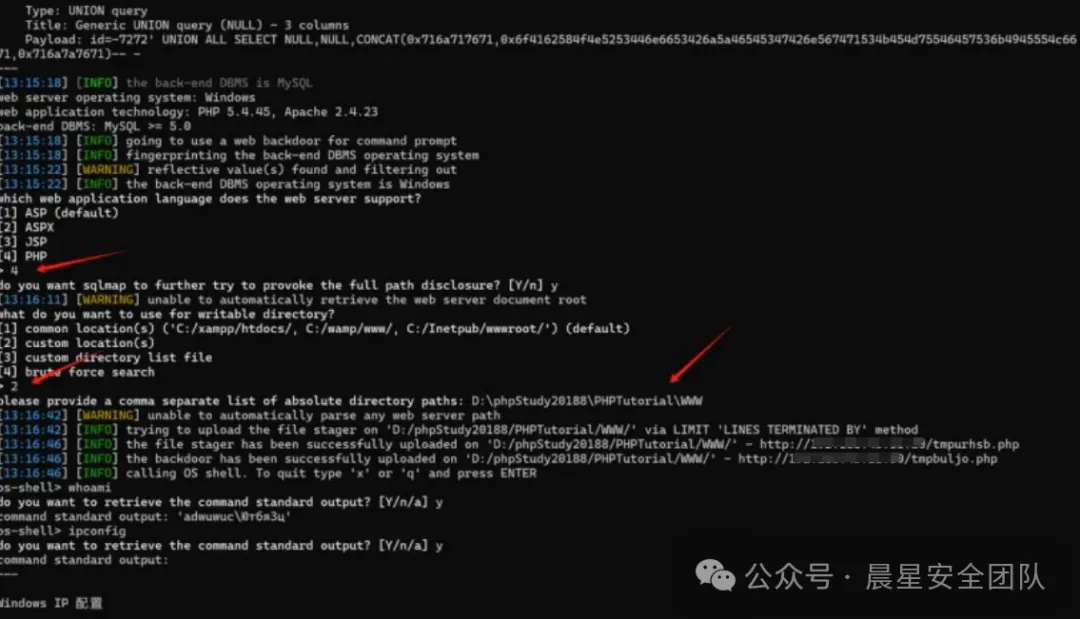 原因:mysql指纹⽀持的语⾔是php,且网站根⽬录路径(信息收集寻找)需要⾃定义。