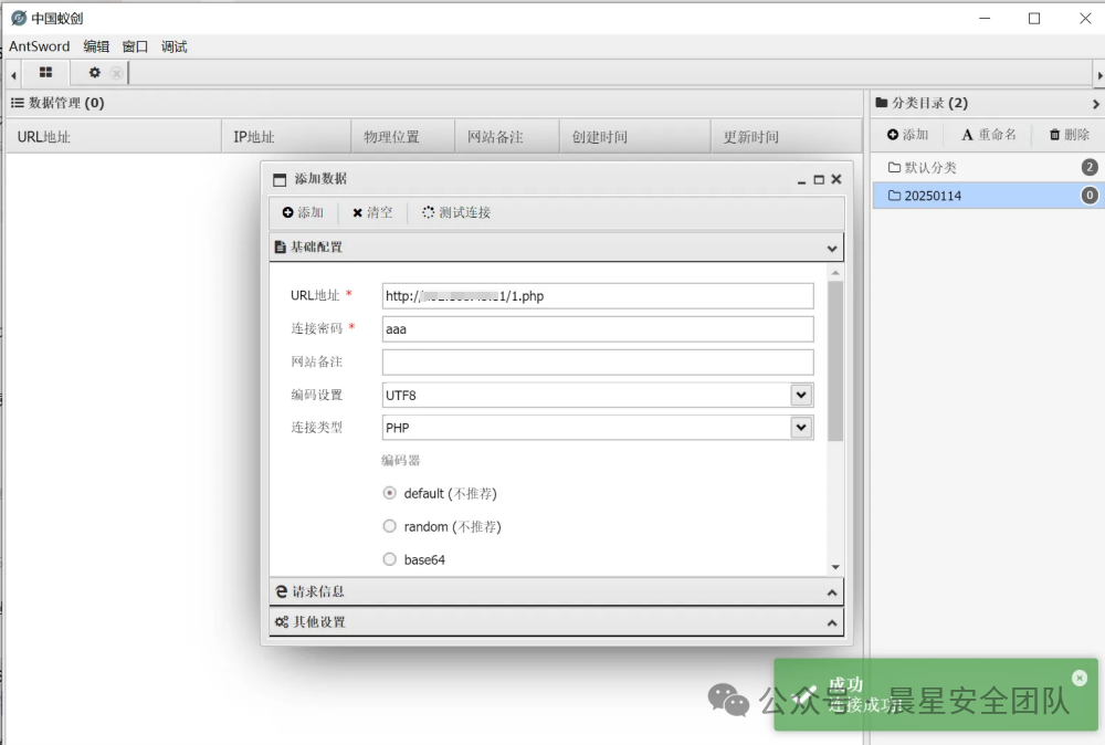 webshell里面只能接受POST和REQUEST请求测试连接之后再添加。