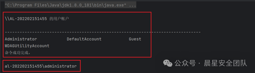 Process process = Runtime.getRuntime().exec(shell+"whoami&&ipconfig");